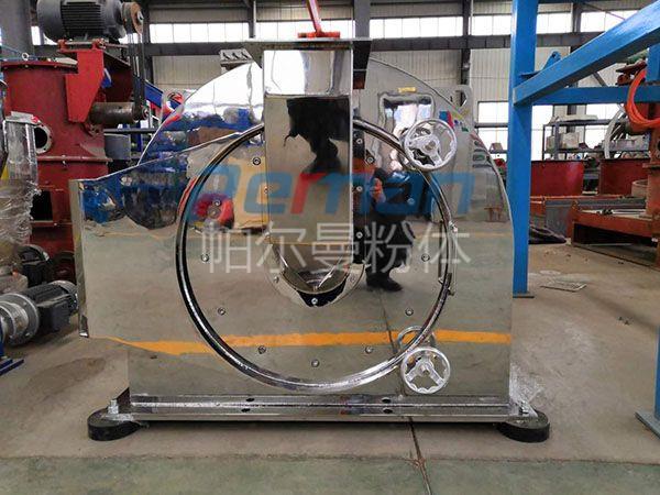 本機(jī)由機(jī)殼、機(jī)門、轉(zhuǎn)子、定子、主軸、主軸氣封裝置、加料裝置等零部件組成,機(jī)殼與機(jī)門之間裝有密封圈,防止粉塵泄漏,物料通過可調(diào)節(jié)振動(dòng)加料器定量輸入粉碎腔,保證加料過程均勻與連續(xù)性。