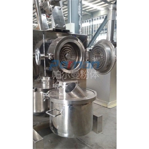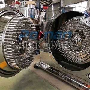 3、磨盤式:物料從進(jìn)料管進(jìn)入由靜盤和動(dòng)磨盤組成的粉碎腔,由于動(dòng)盤的高速旋轉(zhuǎn)和風(fēng)機(jī)的作用下,使物料不斷被剪切、撞擊、摩擦,顆粒越來越小,并向外移動(dòng),最后經(jīng)過出料管由集料系統(tǒng)收集。