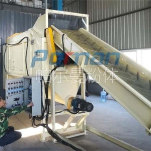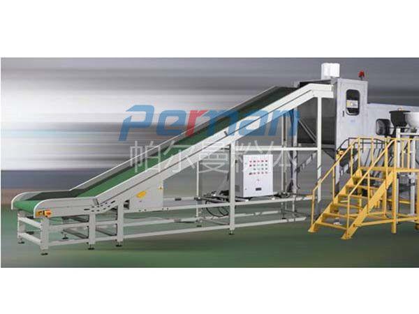 生產(chǎn)原材料會(huì)在皮帶輸送的作用進(jìn)行進(jìn)入到無(wú)塵拆包機(jī)中進(jìn)行拆包作業(yè),分離出的散料會(huì)在出料口直接進(jìn)入到管鏈輸送機(jī)設(shè)備入料口中進(jìn)行傳輸作業(yè)。