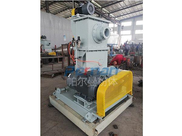 此流程中碳酸氫鈉從原料倉通過變頻螺旋輸送機(jī)定量的供給下游的CAM-H系列空氣研磨機(jī)。所需的吸附劑的量可由脫硫前后的污染物濃度趨勢(shì)曲線計(jì)算。在螺旋輸送機(jī)和研磨機(jī)之間安裝旋轉(zhuǎn)閥,用于隔離氣流,以免氣流影響螺旋輸送機(jī)的定量進(jìn)料。碳酸氫鈉在分級(jí)磨中進(jìn)行研磨后,細(xì)粉由一臺(tái)物料輸送風(fēng)機(jī)輸送至煙氣管道。