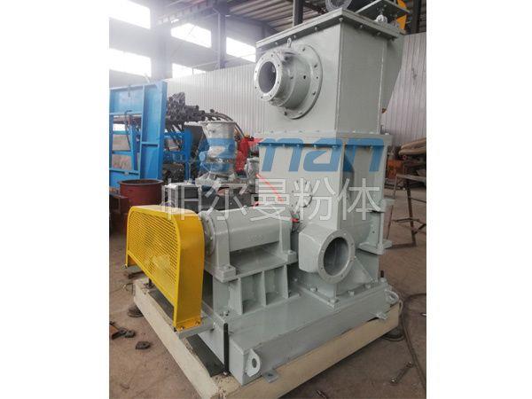負(fù)壓空氣研磨系統(tǒng)的設(shè)備積垢問題經(jīng)常是討論的焦點。設(shè)備的清洗,特別是輸送風(fēng)機(jī)的清洗過于耗時。此外,在開機(jī)和關(guān)機(jī)過程中風(fēng)機(jī)葉輪上的積垢還可能剝落,導(dǎo)致風(fēng)機(jī)的振動及其運轉(zhuǎn)狀態(tài)的振蕩。因此可考慮由負(fù)壓流程改為正壓流程。在新的工作模式下風(fēng)機(jī)安裝在分級磨之前,將工藝空氣壓入研磨系統(tǒng)。這種工作模式的優(yōu)點是研磨后的碳酸氫鈉不通過風(fēng)機(jī)運輸,完全避免了風(fēng)機(jī)的積垢問題。此外風(fēng)機(jī)的耗電也有所降低,使經(jīng)營成本更低,但是對設(shè)備的密封性能提出了更高的考驗,無論是設(shè)備的設(shè)計結(jié)構(gòu)、加工精度及配合都有嚴(yán)格的要求,設(shè)備的造價成本也會更高。